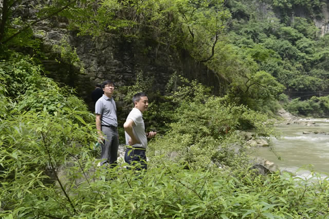 眼下,金松集團(tuán)正與常州恐龍園合作開發(fā)“天下第一猴”主題公園項(xiàng)目。“如何巧借外力,打好全域旅游這張牌?”帶著這一問題,集團(tuán)公司總經(jīng)理黃偉、副總經(jīng)理王保紅一行沿著曲尺河逆行而上,察看沿河兩岸的母豬漂漂流、天生橋瀑布、峽谷河道和懸崖硝洞等景點(diǎn)。