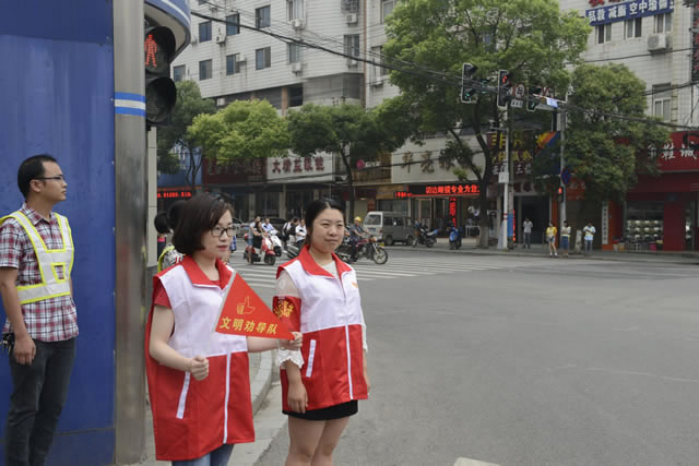 早上7點(diǎn),正值交通高峰期。在城區(qū)民主路的這處十字路口,金松集團(tuán)的3名志愿者身著統(tǒng)一服裝,站在紅綠燈路口處,面帶微笑勸導(dǎo)行人和車輛遵守交通規(guī)則,幫助執(zhí)勤民警維持交通秩序,成為城市的一道靚麗風(fēng)景。而這次文明交通勸導(dǎo)活動,為培育文明風(fēng)尚,提升市民文明素質(zhì)起到了示范、宣傳、勸導(dǎo)和監(jiān)督作用。