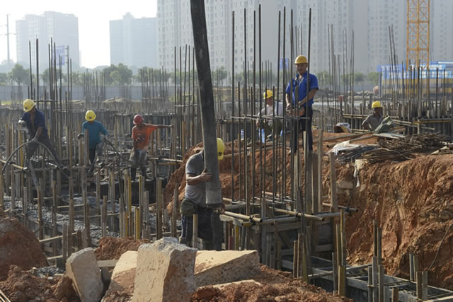 在松江花園項目現(xiàn)場,上百名施工人員在炎炎烈日下?lián)]灑著汗水,奮戰(zhàn)在工地。該項目主要服務于稻谷溪濕地公園雙征安置,總投資約4500萬元,目前1號至5號樓的主體工程建設已全面鋪開,預計今年底完成主體結(jié)構,2018年2月主體封頂。