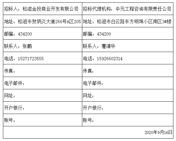 本招標(biāo)項目松滋市金松新區(qū)集貿(mào)市場建設(shè)項目 (項目名稱)已由松滋市發(fā)展和改革局 (項目審批、核準(zhǔn)或備案機關(guān)名稱)以2019-421087-52-03-061115 (批文名稱及編號)批準(zhǔn)建設(shè),項目業(yè)主松滋金投商業(yè)開發(fā)有限公司,建設(shè)資金來自企業(yè)自籌 (資金來源),項目出資比例為100%,招標(biāo)人為松滋金投商業(yè)開發(fā)有限公司,招標(biāo)代理機構(gòu)為中元工程咨詢有限責(zé)任公司。項目已具備招標(biāo)條件,現(xiàn)對該項目的施工進行公開招標(biāo)。