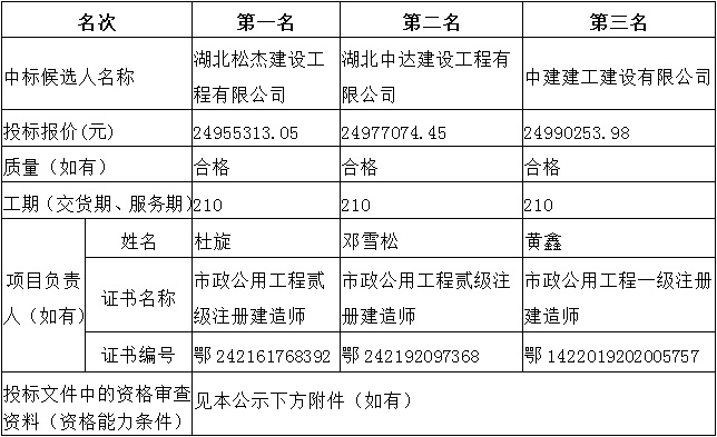 松江花園安置小區(qū)(三期)及配套基礎設施建設項目室外工程于2022年01月25日在湖北省電子招投標交易平臺發(fā)布招標公告,2022年02月23日在松滋市開標室(2)開標,并于2022年02月23日完成評標工作。根據(jù)評標委員會提交的評標報告,湖北松滋金投置業(yè)有限公司已經(jīng)確認評標結(jié)果,現(xiàn)進行評標結(jié)果公示。