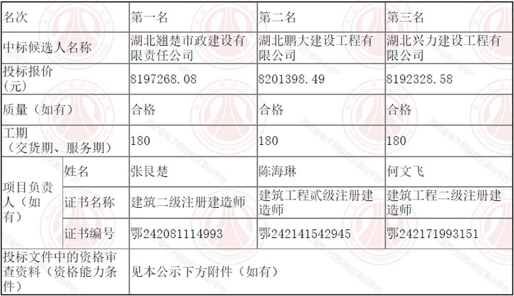 松滋市鄉(xiāng)鎮(zhèn)人才公寓建設(shè)項(xiàng)目松滋市鄉(xiāng)鎮(zhèn)人才公寓建設(shè)項(xiàng)目第三標(biāo)段(王家橋鎮(zhèn))于2022年07月16日在湖北省電子招投標(biāo)交易平臺(tái)發(fā)布招標(biāo)公告,2022年08月09日在松滋市開標(biāo)室(1)開標(biāo),并于2022年08月09日完成評(píng)標(biāo)工作。根據(jù)評(píng)標(biāo)委員會(huì)提交的評(píng)標(biāo)報(bào)告,松滋金投商業(yè)開發(fā)有限公司已經(jīng)確認(rèn)評(píng)標(biāo)結(jié)果,現(xiàn)進(jìn)行評(píng)標(biāo)結(jié)果公示。