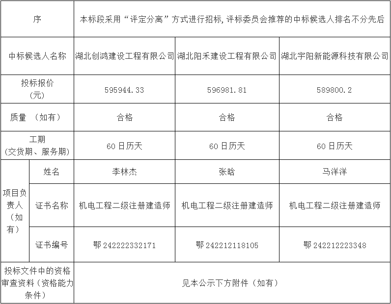 金投?新城臻品金投?新城臻品建設(shè)項(xiàng)目亮化工程于2024年01月26日在湖北省電子招投標(biāo)交易平臺(tái)發(fā)布招標(biāo)公告,2024年02月29日在松滋市開標(biāo)室(2)開標(biāo),并于2024年02月29日完成評標(biāo)工作。根據(jù)評標(biāo)委員會(huì)提交的評標(biāo)報(bào)告,湖北松滋金投置業(yè)有限公司已經(jīng)確認(rèn)評標(biāo)結(jié)果,現(xiàn)進(jìn)行評標(biāo)結(jié)果公示。