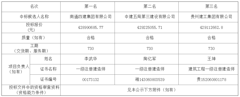 松滋市金投·新城壹品建設項目第三標段松滋市金投·新城壹品建設項目第三標段于2019年05月08日在湖北省電子招投標交易平臺發(fā)布資格預審公告,2019年08月27日在開標室(1)開標,并于2019年08月27日完成評標工作。根據評標委員會提交的評標報告,湖北松滋金投置業(yè)有限公司已經確認評標結果,現進行評標結果公示。
