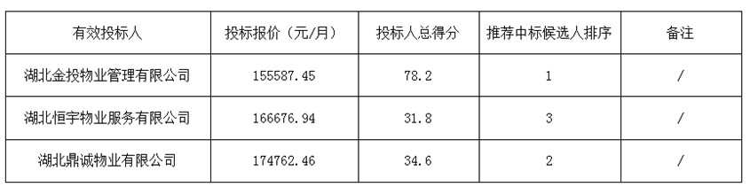 金投•奧體莊園前期物業(yè)服務(wù)項目于2019年08月04日在松滋新聞網(wǎng)(網(wǎng)址:http://www.songzinews.net)(媒介名稱)上發(fā)布招標(biāo)公告,2019年09月10日在松滋市樂鄉(xiāng)凱瑞大酒店五樓會議室開標(biāo),并于2019年09月10日完成評標(biāo)工作。根據(jù)評標(biāo)委員會提交的評標(biāo)報告,湖北松滋金投置業(yè)有限公司已經(jīng)確認(rèn)評標(biāo)結(jié)果,現(xiàn)進(jìn)行評標(biāo)結(jié)果公示。
